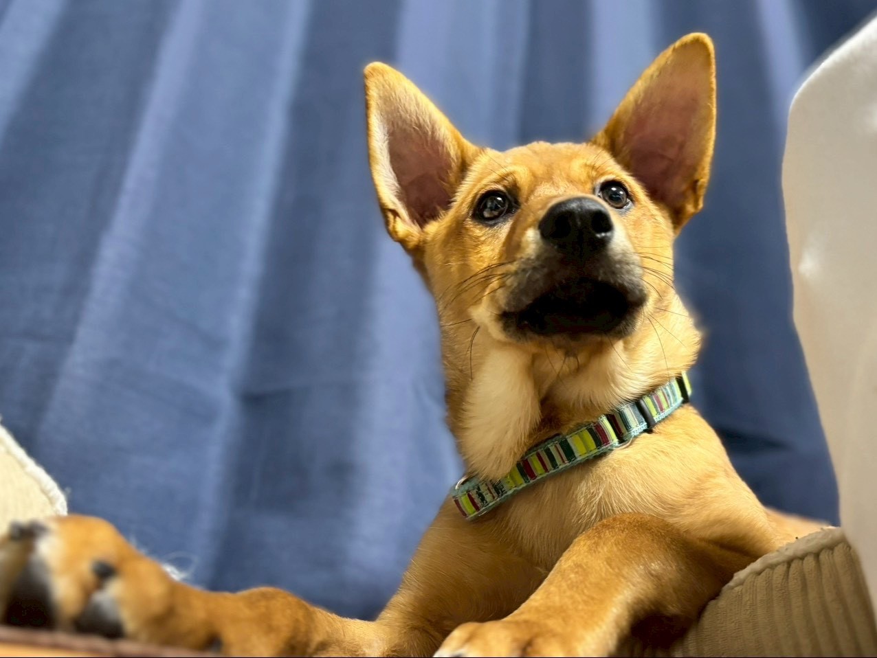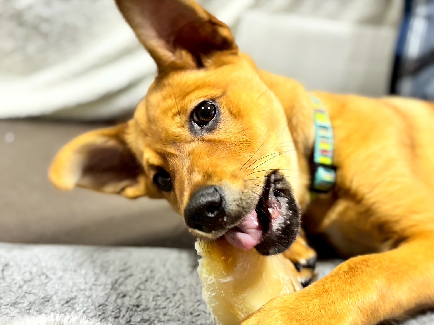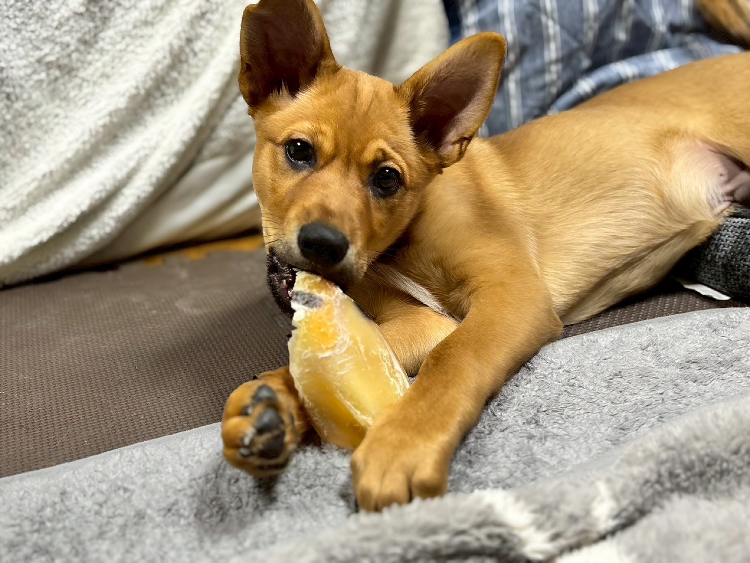 【性格】人見知りもなく、誰にでも尻尾を振って寄っていく甘えん坊です!1人遊びも上手で1人大運動会してます。先住犬との距離の取り方が下手で怒られています。先住犬がシニア犬や、他の犬が苦手な子はかなり負担になると思います。しつこいので怒られることはありますが、犬同士で遊ぶことはすきなので、元気で若く体格も同じくらいもしくは大きな子は遊び相手になると思います!ちょうどカミカミ期で人に構ってほしくて噛みついてきます。